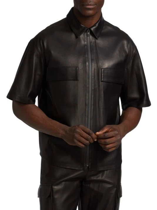Cut from luxe lambskin, Frame’s leather zip-up shirt features bonded seams for a clean finish.
