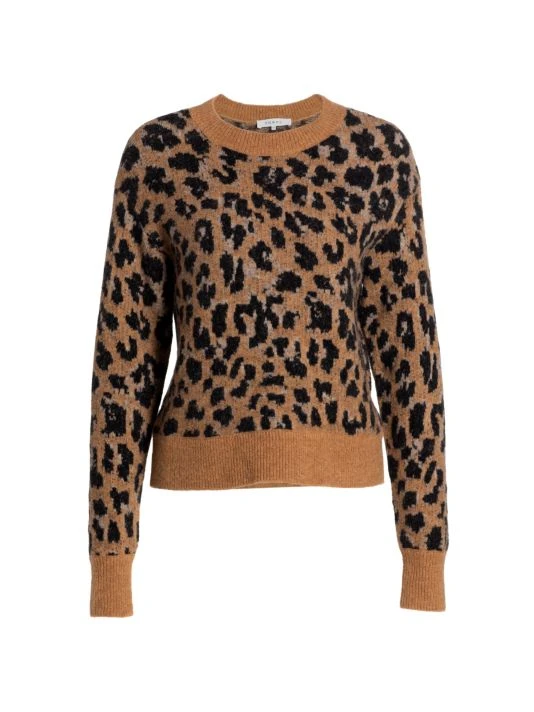 This cheetah-print sweater is crafted of wool-blend.