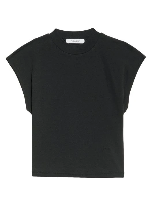 Crafted of linen, Frame’s mock turtleneck T-shirt has a cropped fit with cap sleeves.