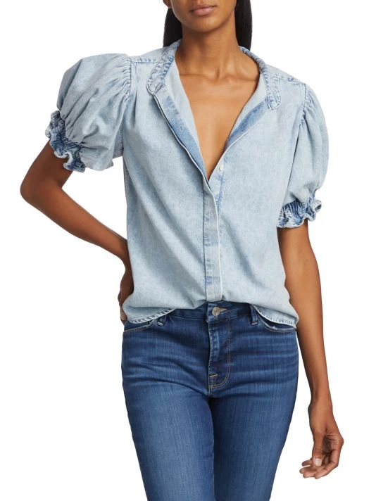 Crafted from soft washed denim, Frame’s button-up shirt features playful puff sleeves.