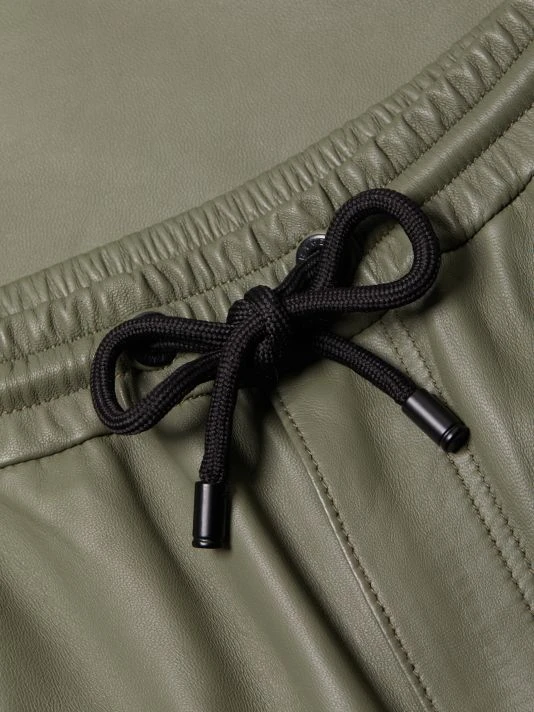 Crafted of leather, these Frame shorts feature a drawstring waistband, side zipper pockets, and a back patch pocket for contemporary appeal.