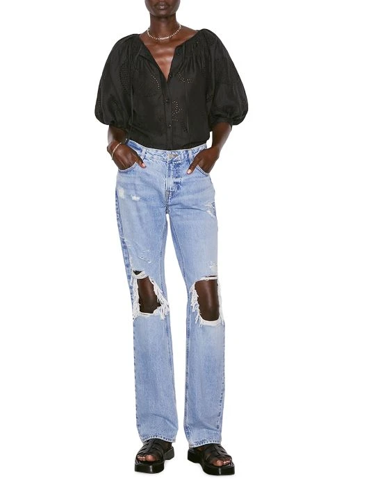 This puff-sleeve blouse by Frame is detailed with intricate eyelet embroidery.