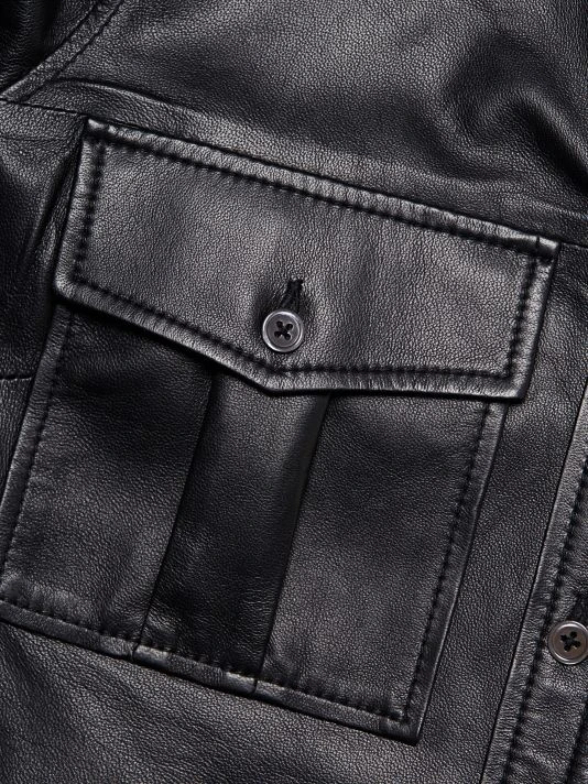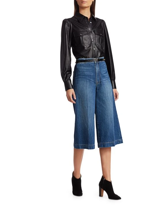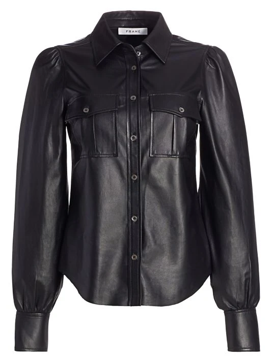 Edgy all leather button down with a feminine puff shoulder.