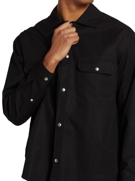 This cotton overshirt features flap pockets and is finished with a front-snap closure.