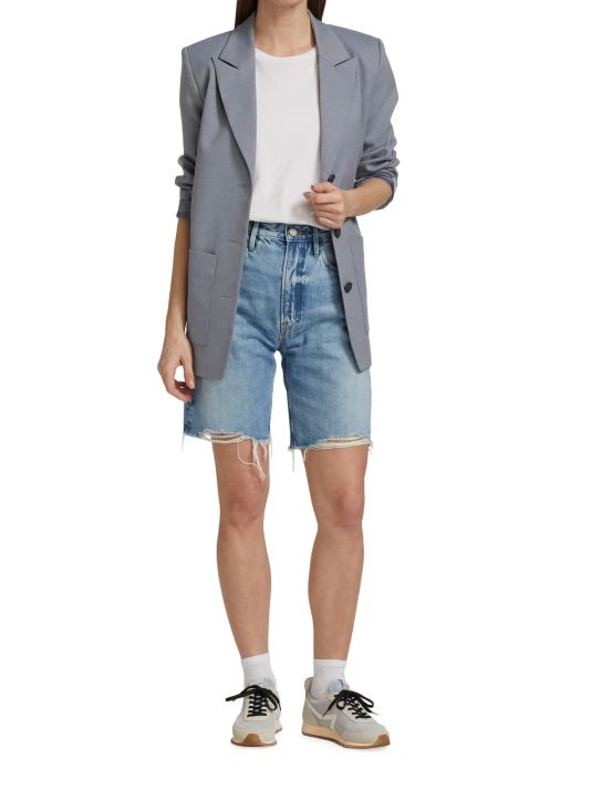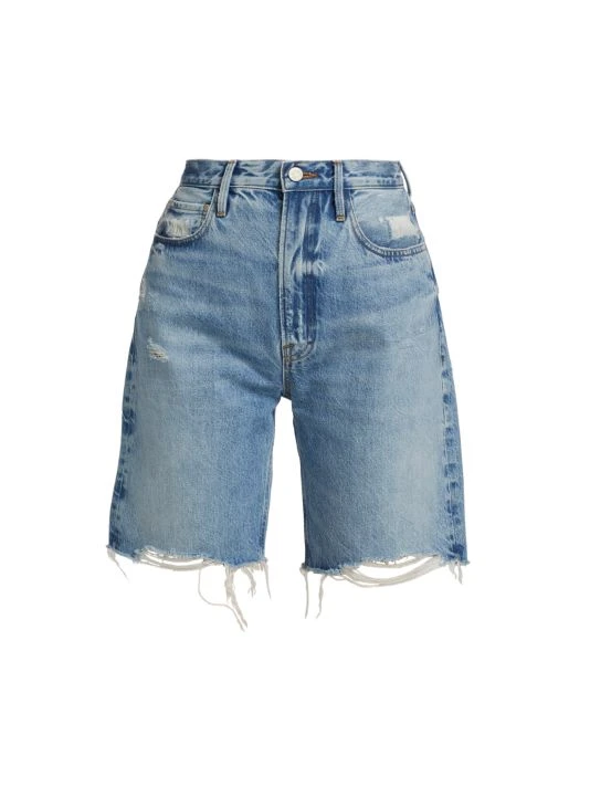 Frame’s denim bermuda shorts feature distressing with a high-rise.