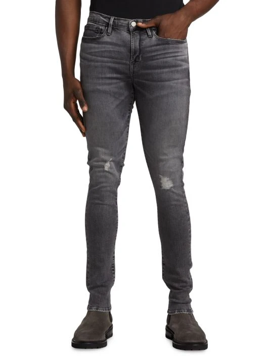Distressing lends a lived-in feel to Frame’s Jagger True Skinny jeans, cut from organic cotton with a bit of stretch for shape.