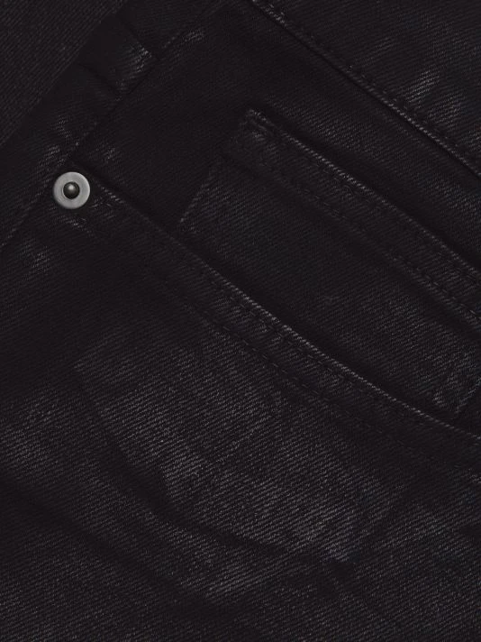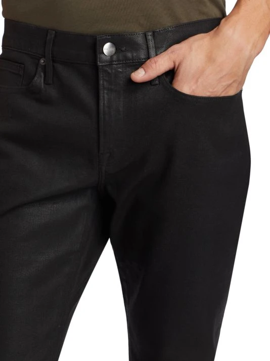 A lustrous coating adds an edgy flair to these skinny jeans.