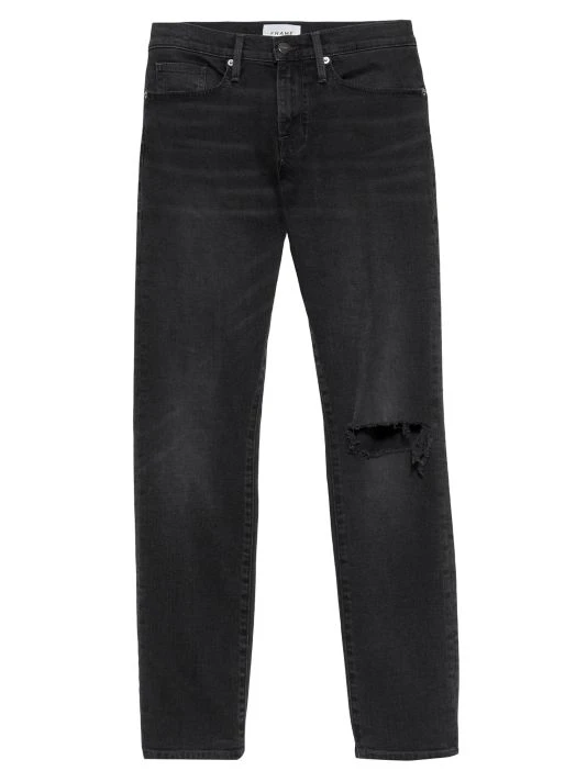 These skinny jeans are enhanced with distressed features like a faded wash and a rip at the knee.