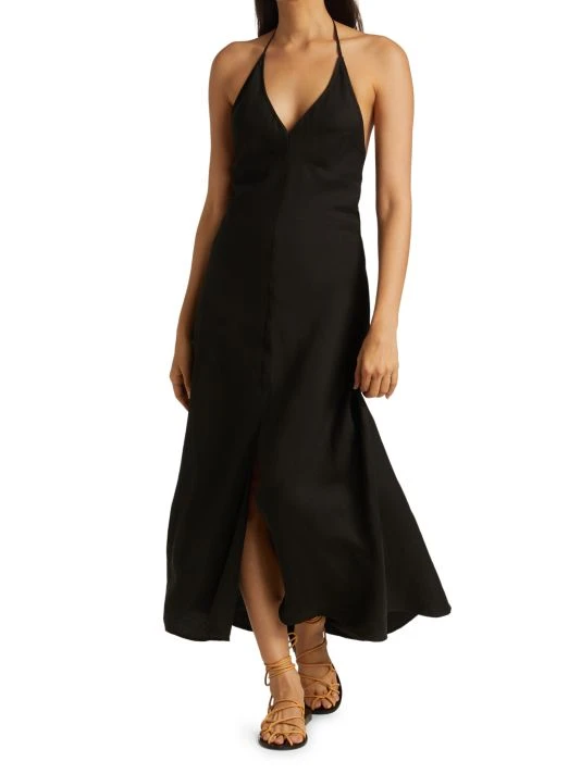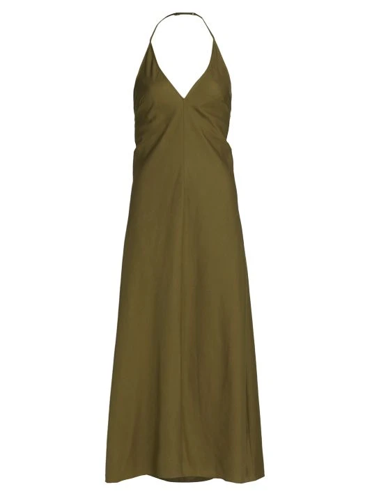 Effortless linen-blend sundress with an open back and lattice detail.