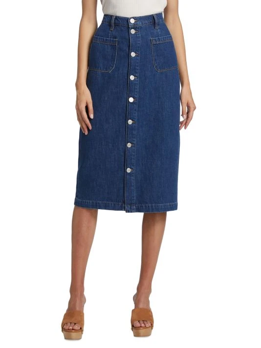 Crafted of denim with contrast stitching, Frame’s Le Bardot midi skirt is detailed with exposed button closure.