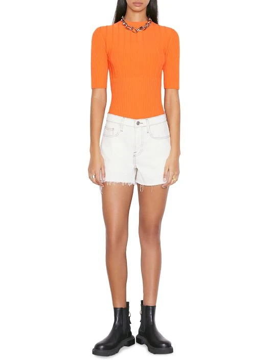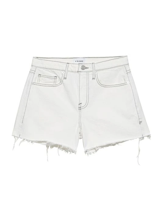 Crafted of denim, these shorts are elevated by a raw hem and contrast topstitching.
