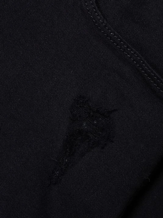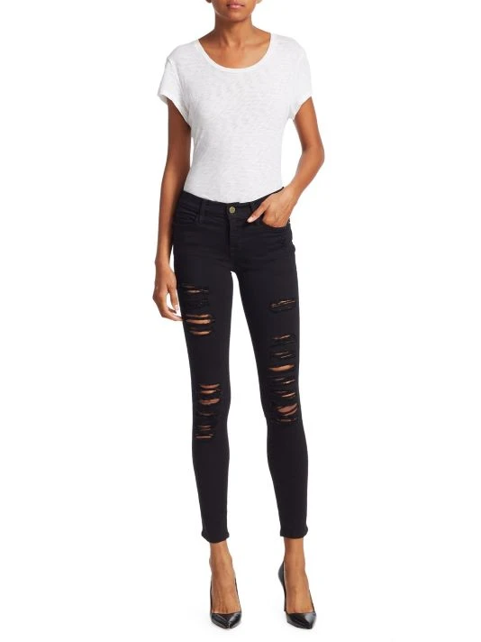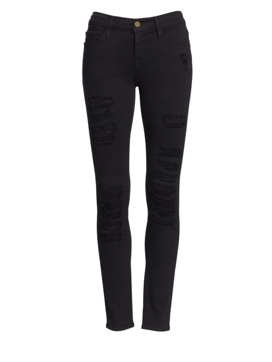 Shredded detail slices into these sleek skinny jeans with a chic dose of punk edge.