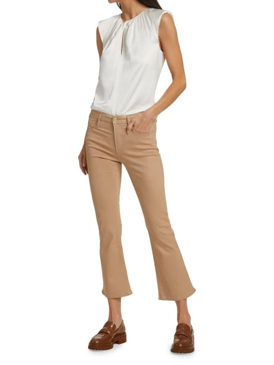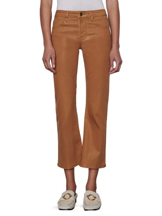 Constructed of coated stretch denim, these cropped boot-cut jeans are cut in a mid-rise.