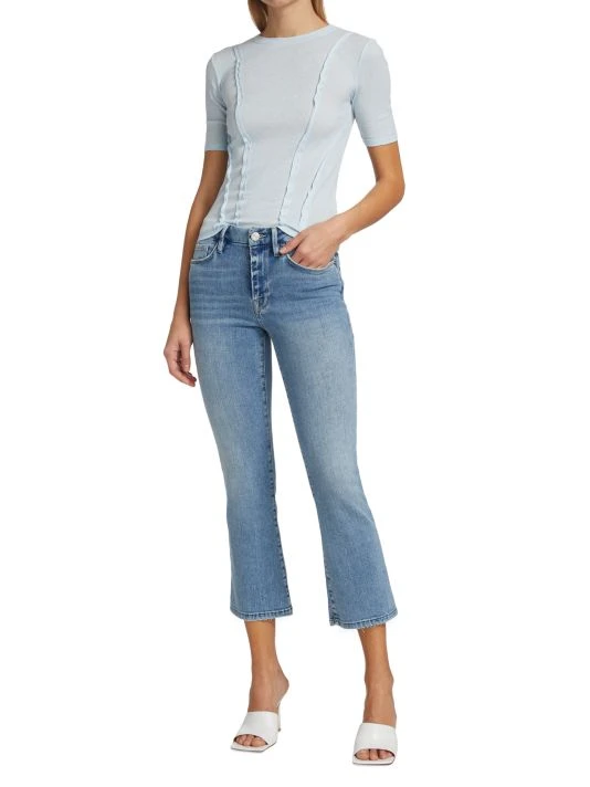 A cropped version of Frame’s classic Mini Boot silhouette, these mid-rise jeans are fitted through the hip and high, flaring into a boot-cut leg. This style is crafted of light-stretch denim.