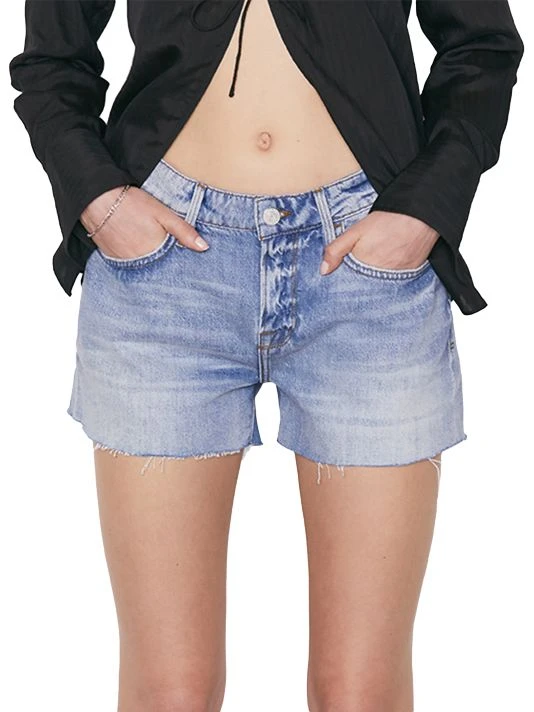 Frame’s Le Grand Garçon denim shorts are crafted from recycled cotton with a raw hem.