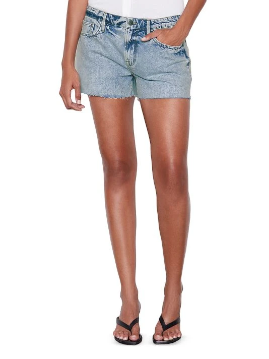 Frame’s Le Grand Garcon denim shorts feature a contour waistband and are designed to hang on the hips for a modern, slouchy fit. This style is finished with raw edges that can be worn straight or cuffed.