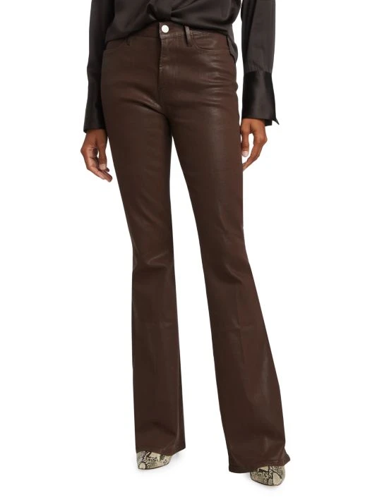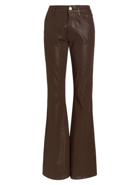 Designed to flatter and elongate the silhouette, Frame’s Le High flare jeans are cut from coated denim to a leather-like finish.
