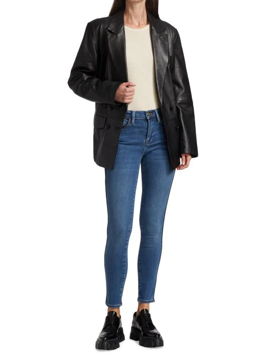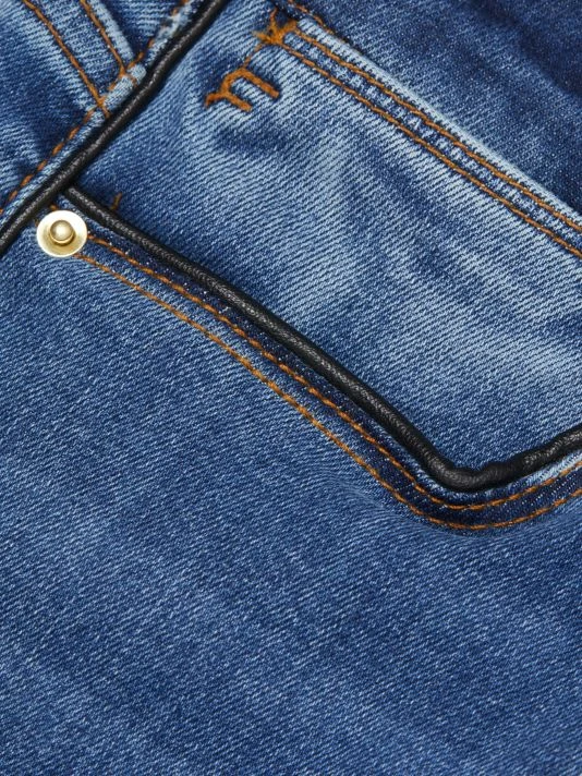 Styled with whiskering details, these skinny jeans feature piping along the pockets and sides.