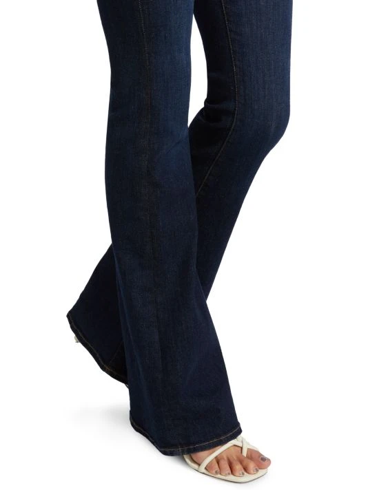 Cut with a high rise, a lengthening flared silhouette lends a retro feel to these fitted jeans.