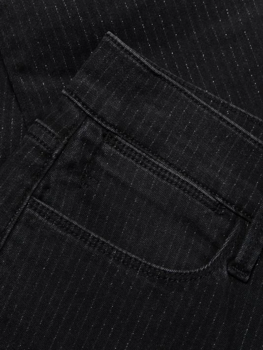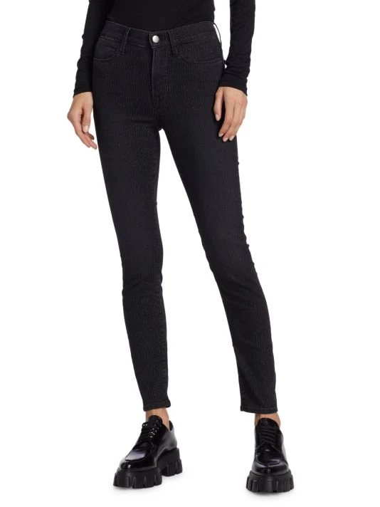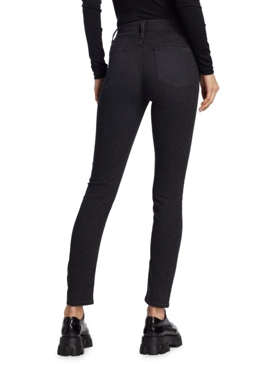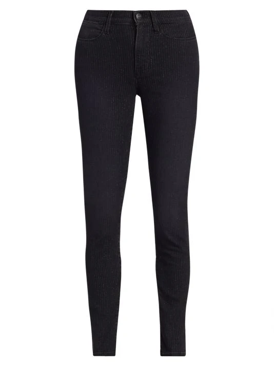 These high-waist skinny jeans are made of stretch-denim with metallic pinstripe details.