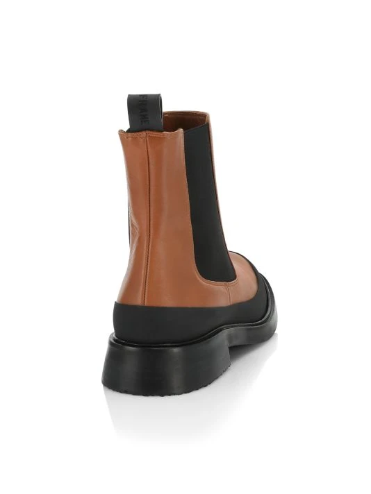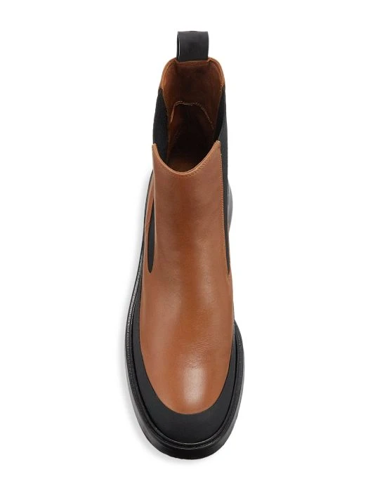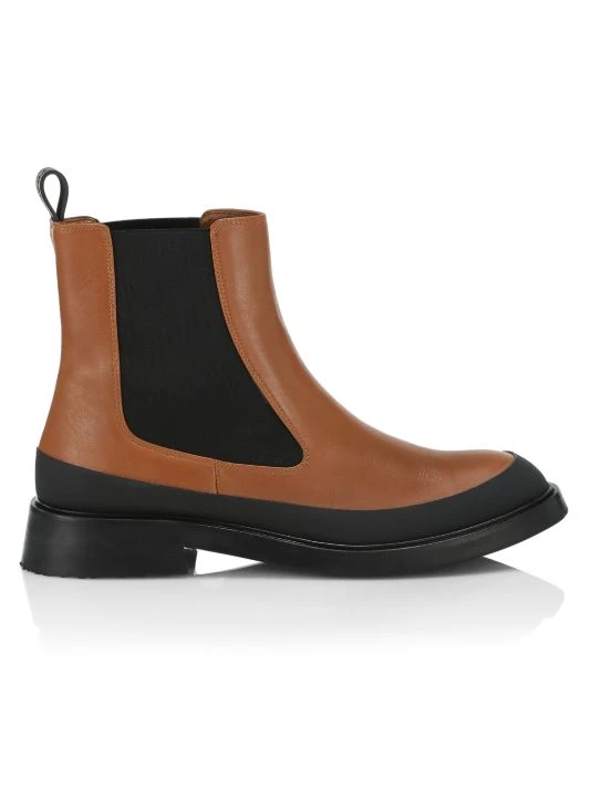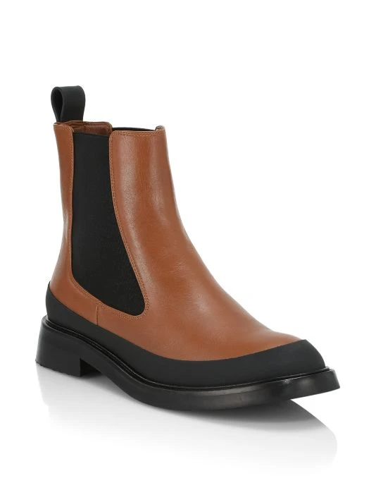 Of-the-moment leather booties with a practical overlap rubber sole.
