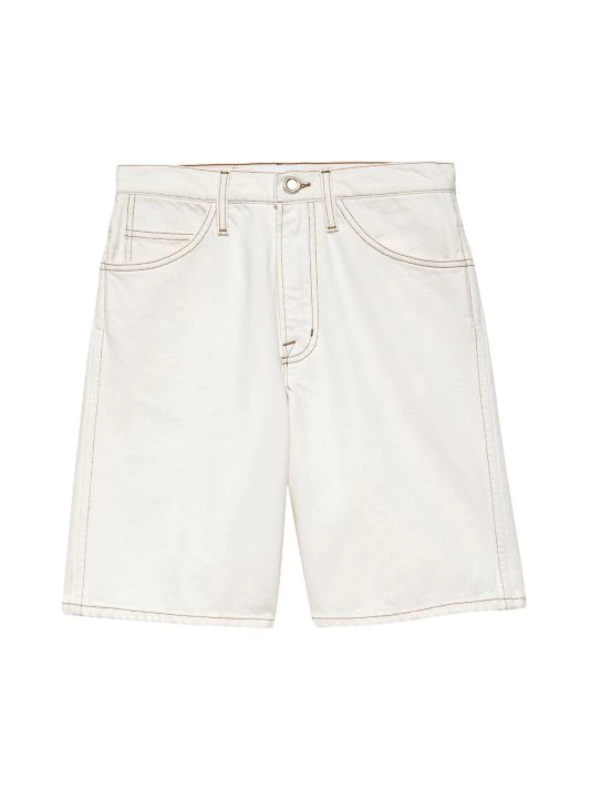 Frame’s Le Italian denim shorts feature a classic Bermuda silhouette with contrast topstitching for dimension.