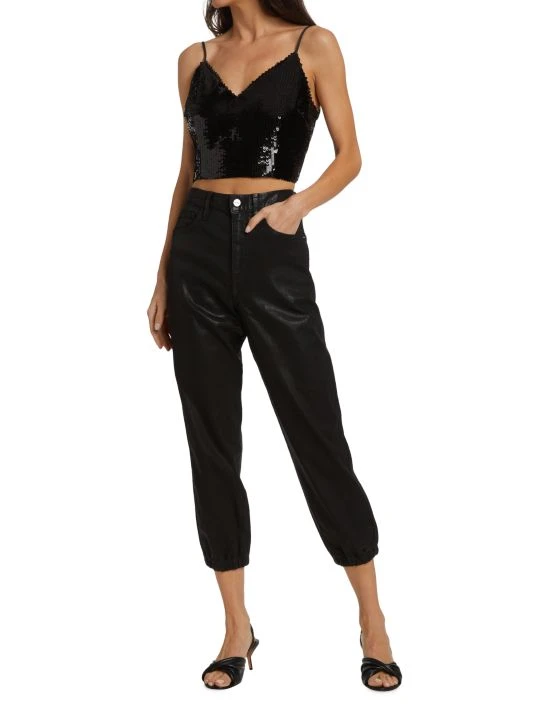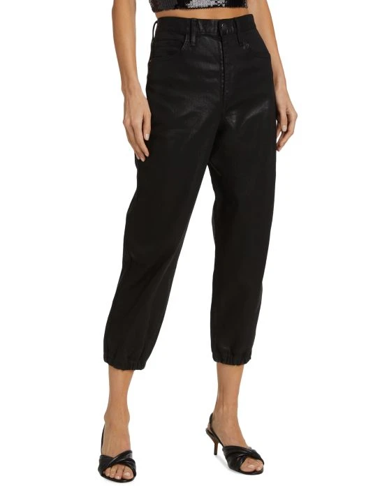 These high-rise coated jeans feature an athleisure-inspired cinched look at the ankles.