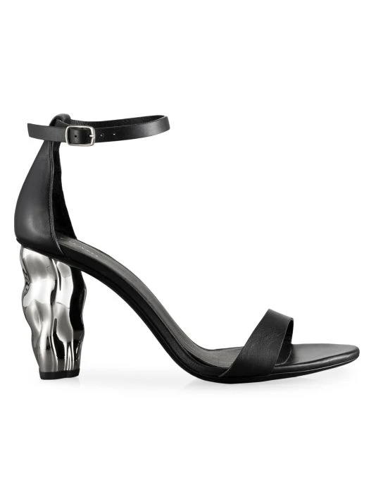 Paired with an eye-catching sculpted heel, these leather sandals evoke a whimsical design.