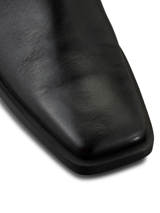 Flaunting an elongated squared toe, these ankle boots are rendered in rich leather.
