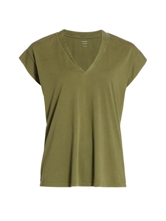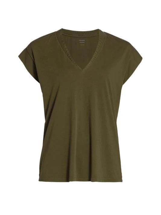 A deep-V neckline and angled dolman sleeves toughen up this pima cotton muscle tee.