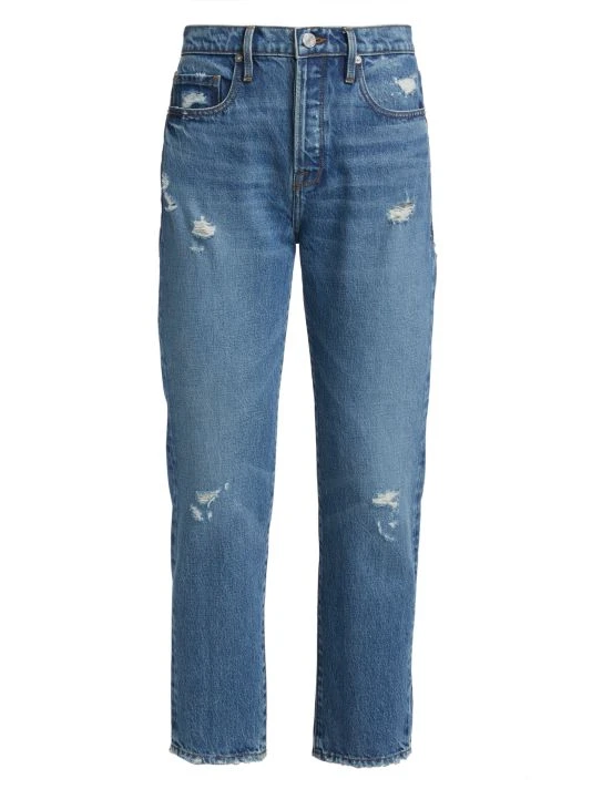 Made of denim, these straight-fit jeans feature spots of distressing at the front.