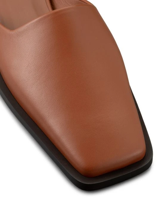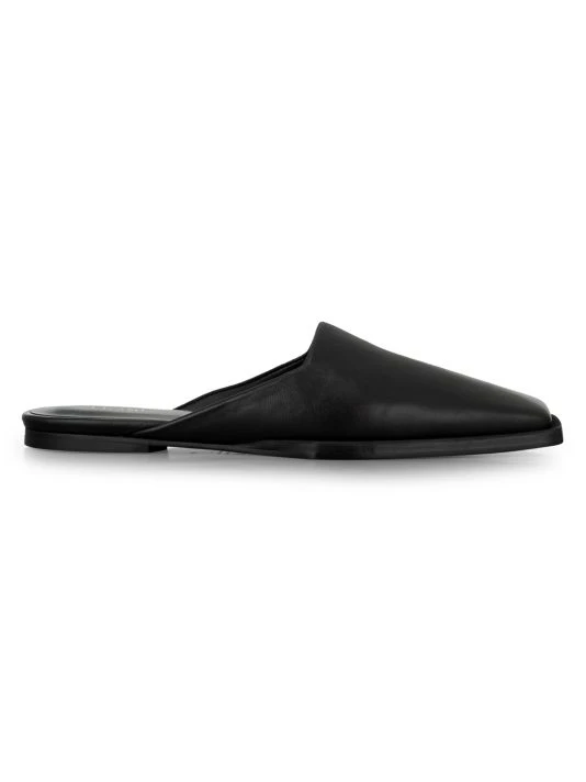 Flaunting an elongated squared toe, these slip-on slides are rendered in rich leather.
