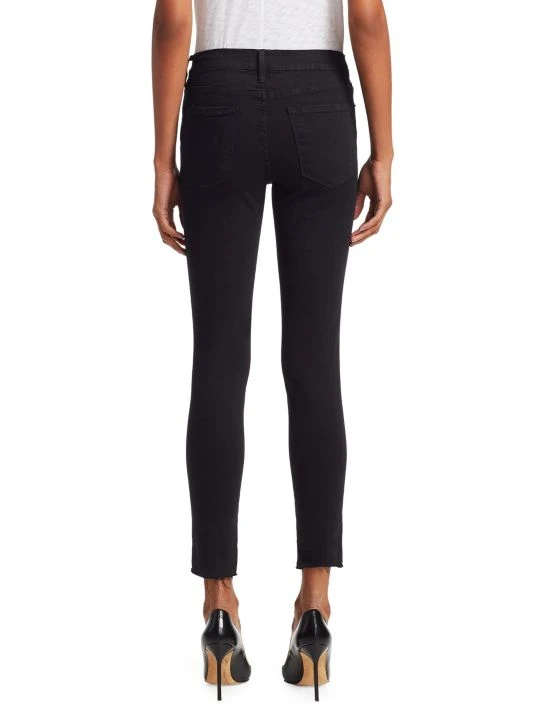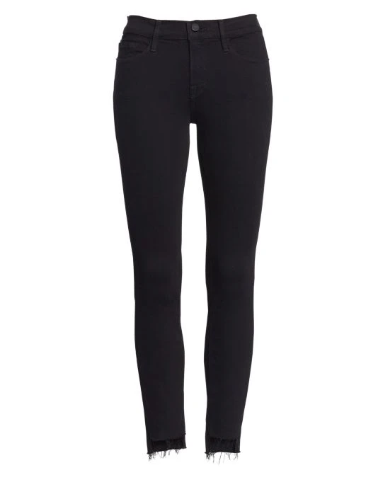 Edgy skinny jeans with frayed high-low hem.