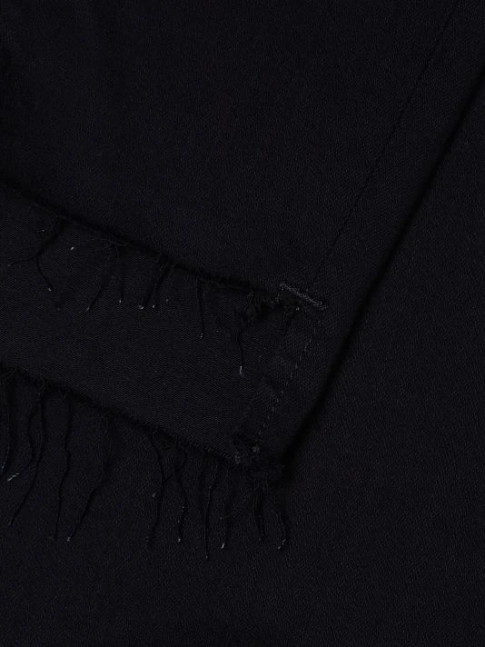 - Frayed hi-lo hem