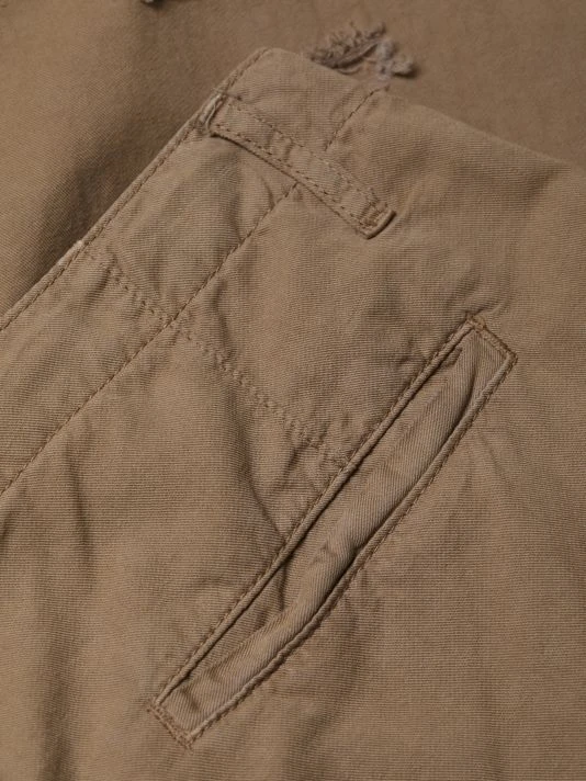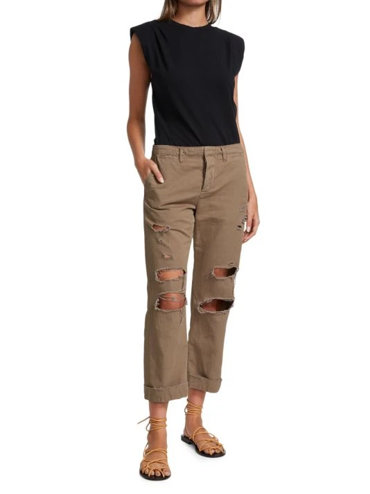 High-rise cotton twill trousers with distressed details and a relaxed fit.