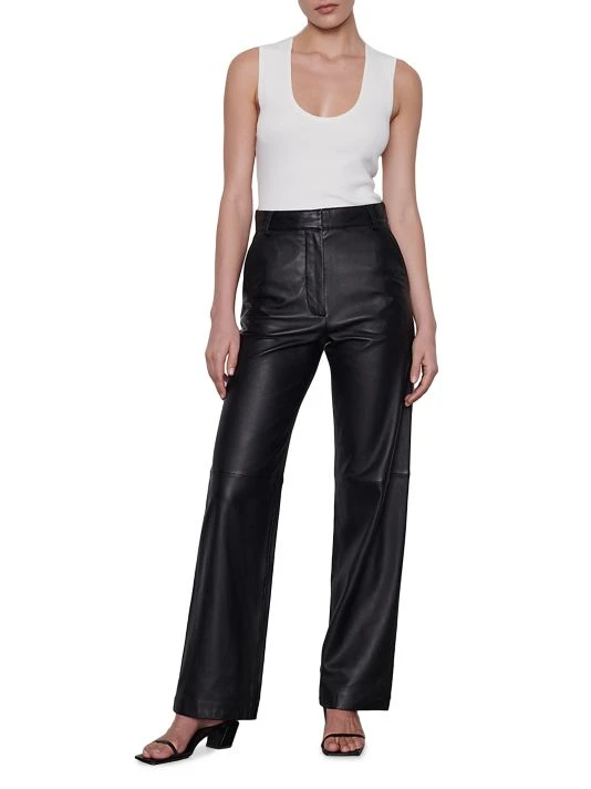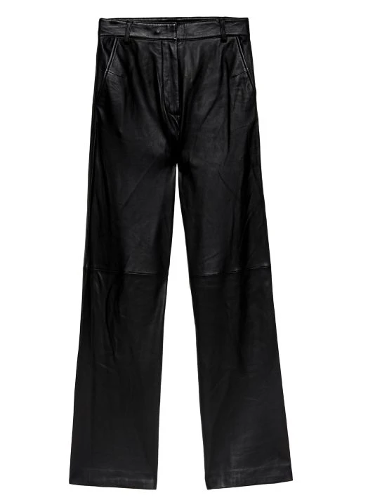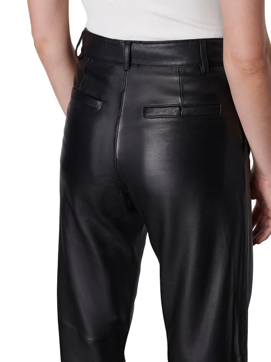 Edgy straight-leg pants crafted of soft leather, features side slit pockets and tailored welt pockets.