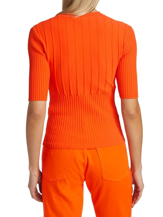 This short-sleeve sweater is designed in a mixed rib-knit.