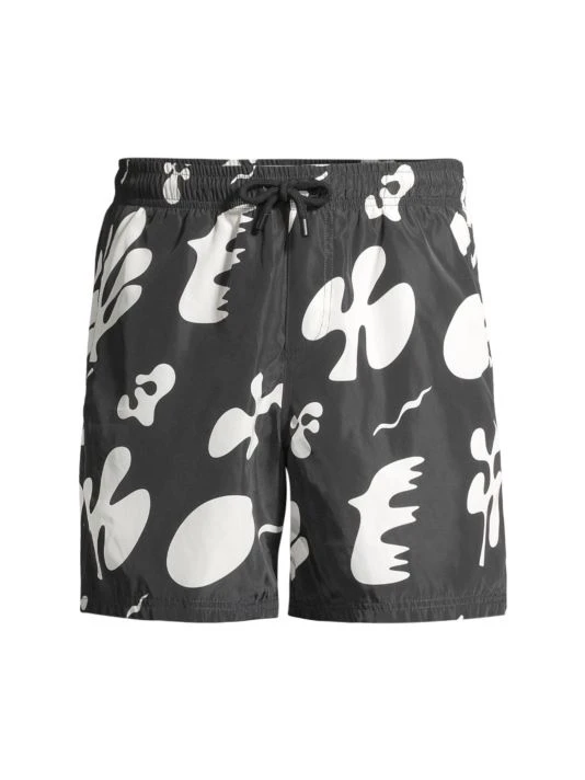 Showcasing a two-tone abstract print, these shorts feature multiple pockets and a comfortable drawstring waist.