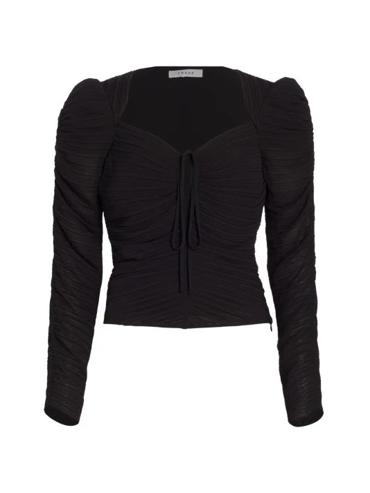 Since 2012, Frame has continued to design stylish ready-to-wear from their headquarters in Los Angeles. This long-sleeve top is made of ruched fabric with a keyhole tie detail at the front.
