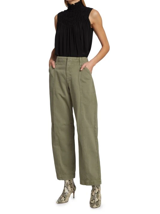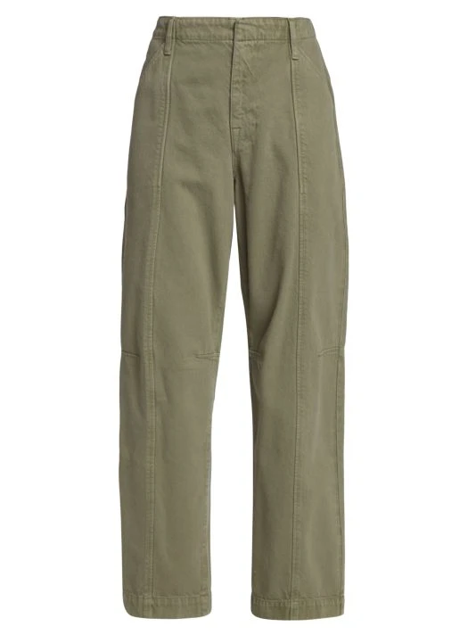 Relaxed trousers with a slung hip in a high-rise cut, fall into a straight leg with seam detail.