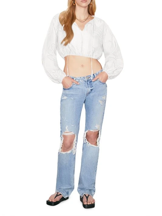 Frame’s shirred blouse is detailed with eyelet embroidery in a cropped fit.