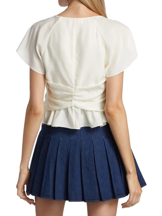 This shirred top from Frame is crafted of delicate flouncey fabric with flutter sleeves.