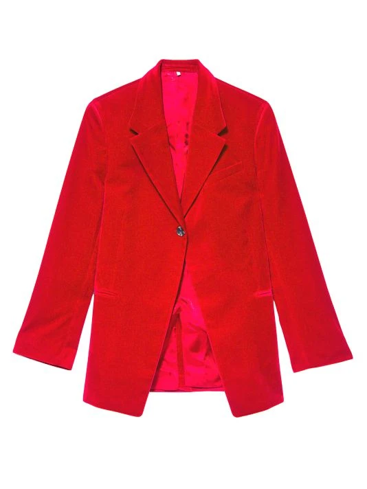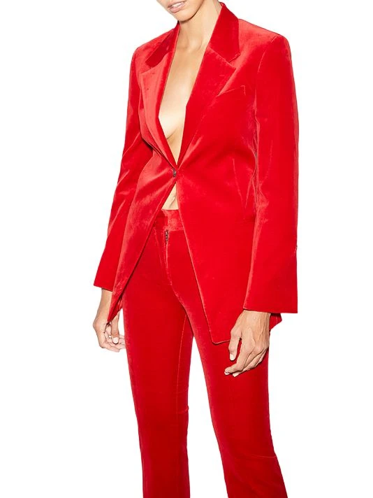 Tailored with a longer fit, this single-button blazer is cut from luxe stretch cotton velvet.