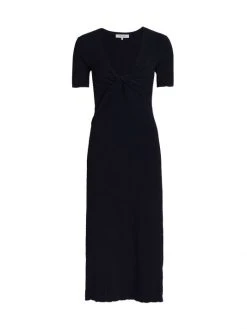 This maxi dress is designed with short sleeves and a front wrap detail.